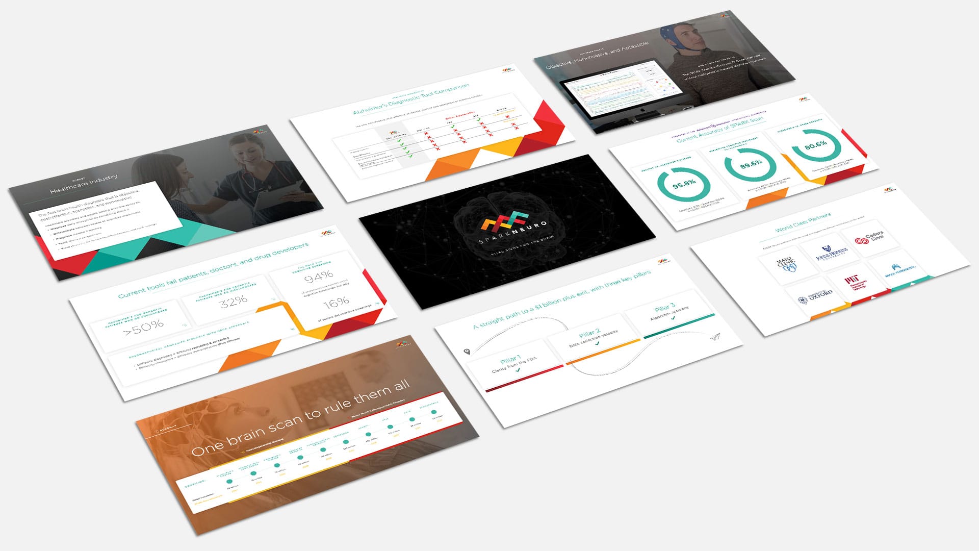 Our mission was to empower SPARK Neuro’s leadership to tell a more effective and impactful story to investors. With a deep understanding of their business goals, the current market landscape, and their future trajectory, we crafted a compelling narrative that resonated with investors. This included developing messaging, storytelling, and design that clearly communicated SPARK Neuro’s vision and potential.
